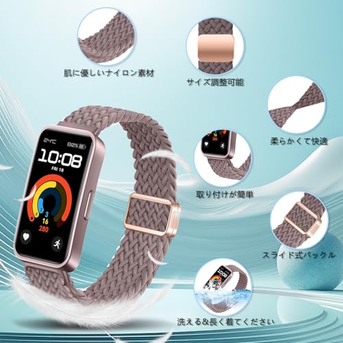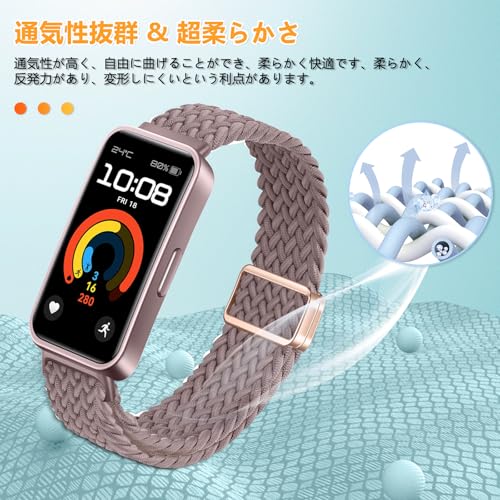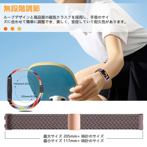 Huawei Band 10/Huawei Band 9/Huawei Band 8 交換バンド ナイロン 編み込み マグネットクラスプ 時計ベルト ファーウェイ Band10 / Band9 バンド 耐久性 通気性 弾力性 伸縮性 柔軟性 防汗 長さ無段階調整 日常 スポーツ 仕事 旅行に最適 ベルト Huawei Band...