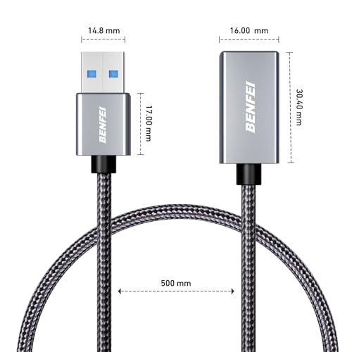【 USB 3.0 延長ケーブル】: 0.5M ナイロン編み。、カメラ、電話、USB ハブ、マウス、キーボード、プリンター、ハードドライブ、ヘッドセットに対応