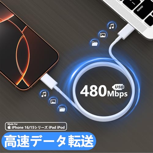 【高速データ転送】充電コード内部に高品質の5芯銅線を採用し、普通のケーブルより約3倍(3A)のスピードで充電が可能で、効率的に充電時間を節約します。充電同時に480Mbpsのハイスピードでデータ転送ができ、データ転送の安定性およびあなたのデバイスの安全を確保できるiPhone 充電ケーブルです。