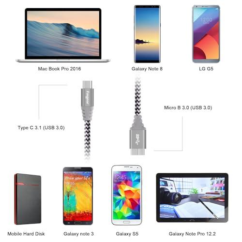 USB C Micro B ケーブル 30cm ナイロン メタルコネクタ Type C Micro 3.0ケーブル 急速充電 5Gbps 同期 東 芝Canvio Galaxy S5 Note 3などに対応 (30cm グレー)