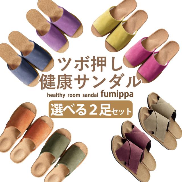 選べる2足セット ツボ押しサンダル ヘルシールームサンダル スリッパ ふみっぱ fumippa 足つぼ つぼ押し 健康【北海道沖縄県除き送料無料】 健康サンダル 青竹踏みスリッパ レディース メンズ おしゃれ 足裏マッサージ 指圧スリッパ 贈り物 プレゼント