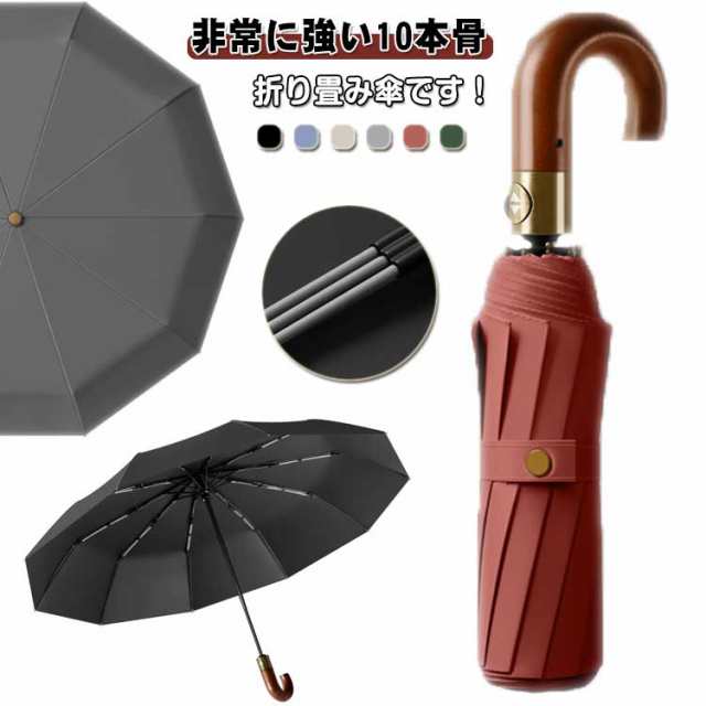| ・非常に強い10本骨 折り畳み傘です! ・片手で開くことのできる自動開閉タイプ。 ・長傘にも負けないワイドな大きさで荷物もしっかりとカバーできます。 ・晴れの日も雨の日も使える兼用タイプ。 ・持ちやすいJ型・木製手元。 | |