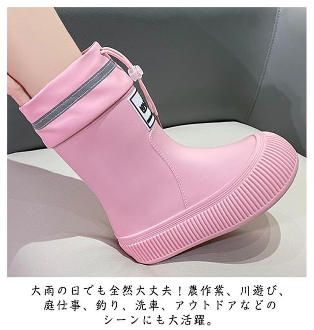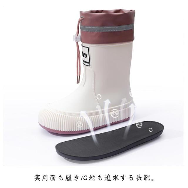 レインブーツ おしゃれ 長靴 レディース レインシューズ 防水 巾着型 雨靴 女の子 ジュニア 水入りにくい 滑りにくい レイングッズ 雨具 雪遊び 歩きやすい 通学通勤 園芸 田植え 農作業 釣り 洗車 登山 アウトドア 梅雨対策 台風 雪