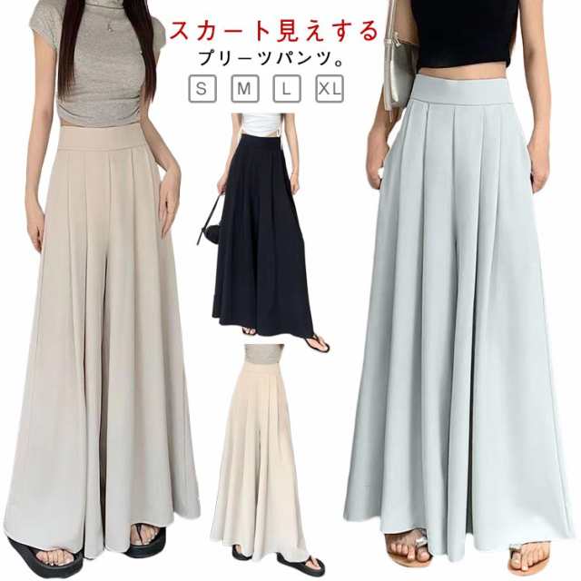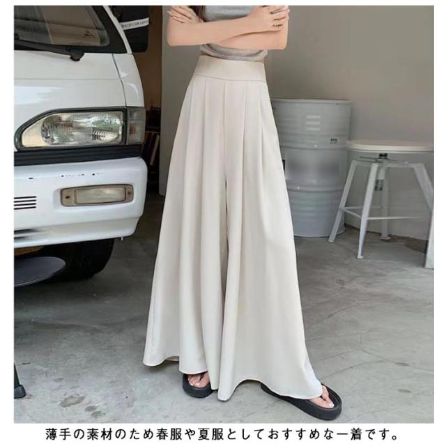 ワイドパンツ タック入り スラックス レディース スカーチョ ガウチョパンツ たっぷり フレアパンツ プリーツパンツ ワイド ハイウエスト ゆったり 体型カバー フレアスカート ロング丈 春 夏 ズボン 薄手 春服 夏服 大人 可愛い おしゃれ 美脚 脚長効果 着?せ 【送無】