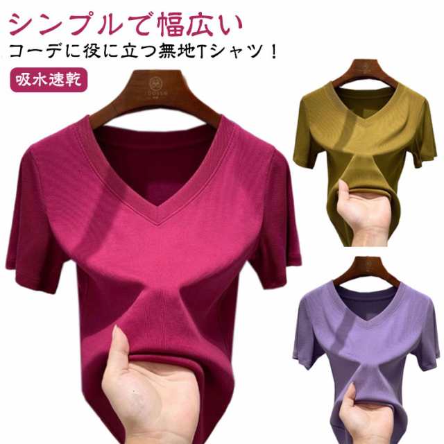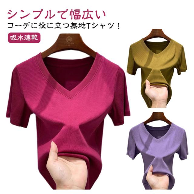 Tシャツ 半袖 レディース 薄手 春夏 ひんやり 涼しい Vネック Tシャツ UVカット モーダル素材 tシャツ シンプル 無地 カットソー ストレッチ トップス 半袖Tシャツ 大きいサイズ ヨガウェア 吸水速乾 スポーツ ゴルフウェア 体型カバー 汗対策 カジュアル 送料無料