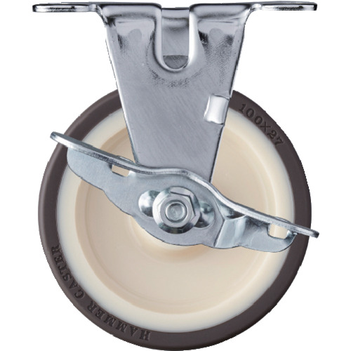 ハンマー プレート式キャスター 固定ストッパー付 車輪径100mm ウレタン車輪(ローラーベアリング) Eシリーズ 415ERUB100 金物 建築資材 キャスター プレート式ウレタン車(代引不可)