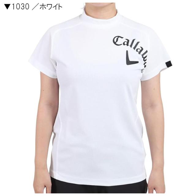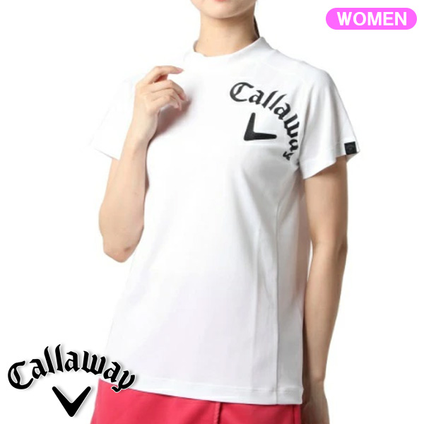 キャロウェイゴルフ レディース ロゴプリントクローズドメッシュカノコ 半袖モックネックシャツ C22134250