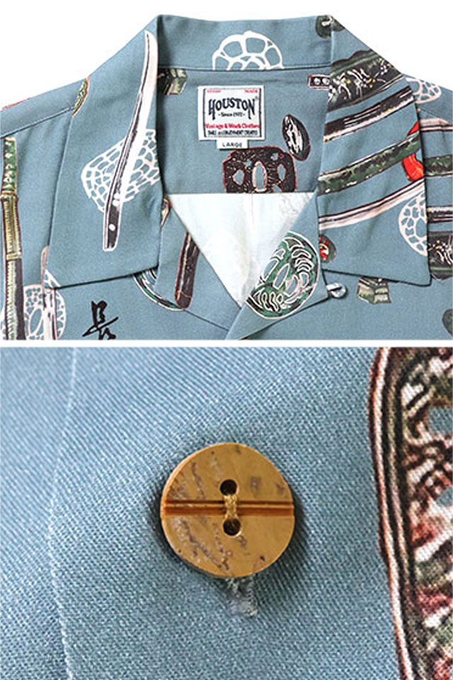 日本で初めてオリジナルのフライトジャケットを生み出し、その後も数々の国内製ミリタリー商品を製造する「ヒューストン」から、レーヨンアロハシャツ「日本刀」(41203)のご紹介です。