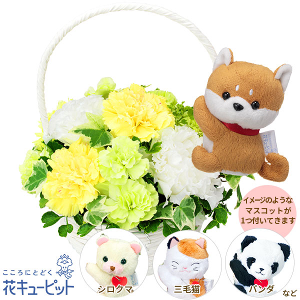 17時迄の注文で翌日届可【退職祝い】 花 ギフト お祝い 送別 記念 プレゼント 花キューピットのトルコキキョウのマスコット付きバスケット yi00-512292