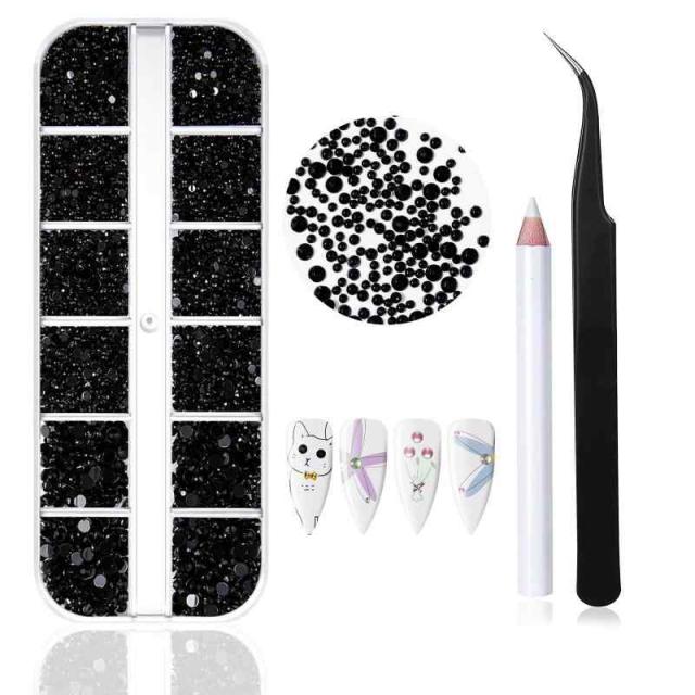 【商品仕様】ネイルアート用ラインストーンボックスには小さな正方形が12個入っています。 大きさの違う丸いネイルアートラインストーンが3種類っています。 ネイルアートや小さなデコレーションに最適です。ピンセットとネイルアート用クレヨン付き。