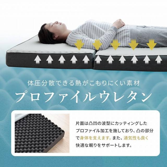 ふんわりマットレス マットレス セミダブル 三つ折り 高反発 プロファイルウレタン 硬め 折りたたみ 寝具 約115×195×12cm