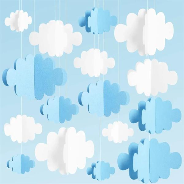 3Dクラウドハンギングデコレーション、天井、パーティーの装飾、模造品、フェルト、偽、16個、セット