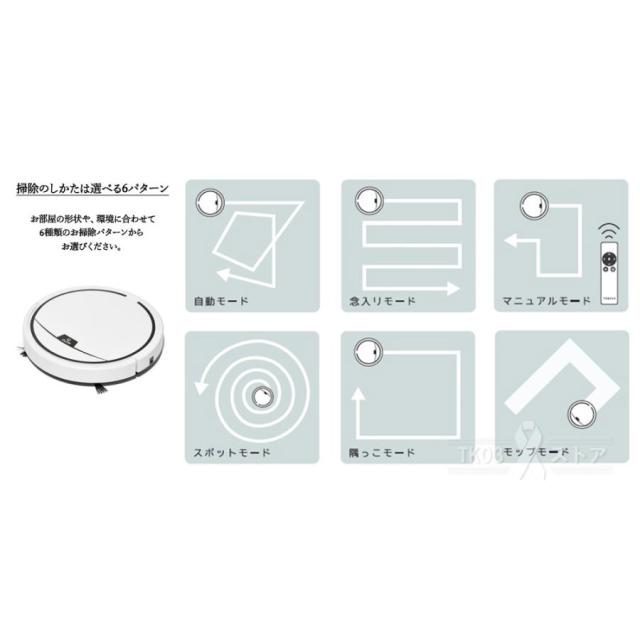 6.モップモード(モップで床を拭きながら、自動モードの運転パターンでお掃除します。