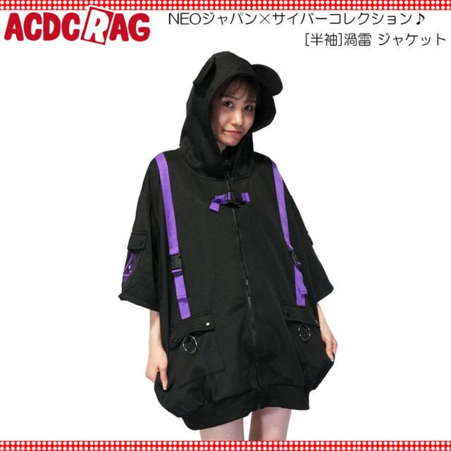 ACDC RAG エーシーディーシーラグ [半袖]渦雷 ジャケットパープル 原宿系 原宿 ライン ファッション パンク ロック サイバー サバゲー ブラック jr-451-116