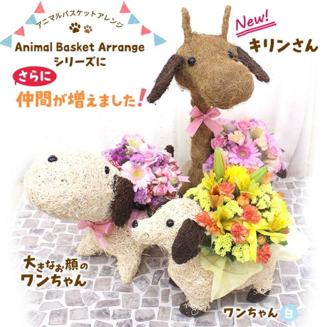 お花のイメージが選べる【アニマルバスケットアレンジ・キリンさん】愛妻の日 バレンタイン プレゼント 送料無料 季節の花でおまかせ 誕生日 記念日 入園入学 卒園卒業 結婚 動物病院 開店 周年 お祝い ペット きりん かわいい 即日発送 画像配信 [生花アレンジメント]