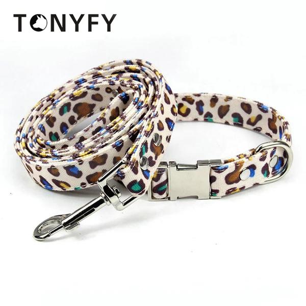 Ошейники для собак Поводок с леопардовым принтом Регулируемые ошейники для домашних животных Холст Мягкий удобный персонализированный ошейник для маленьких средних и больших собак