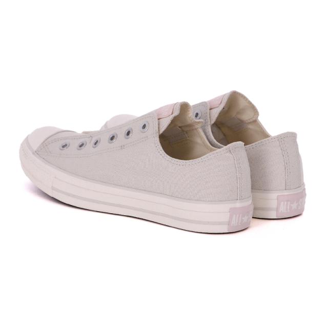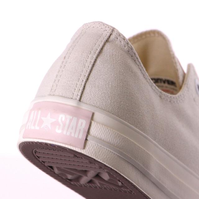 【商品特徴】 オールスターのパターンアレンジモデル・脱ぎ履きしやすいスリップ仕様のオールスター・第一ハトメに「CONVERSE」ロゴの刻印入りのハトメを採用・ニュアンスカラーのアッパーをベースにタンラベルやヒールラベル、インソールのロゴに淡いピンクを差したペールホワイト/ライトピンク