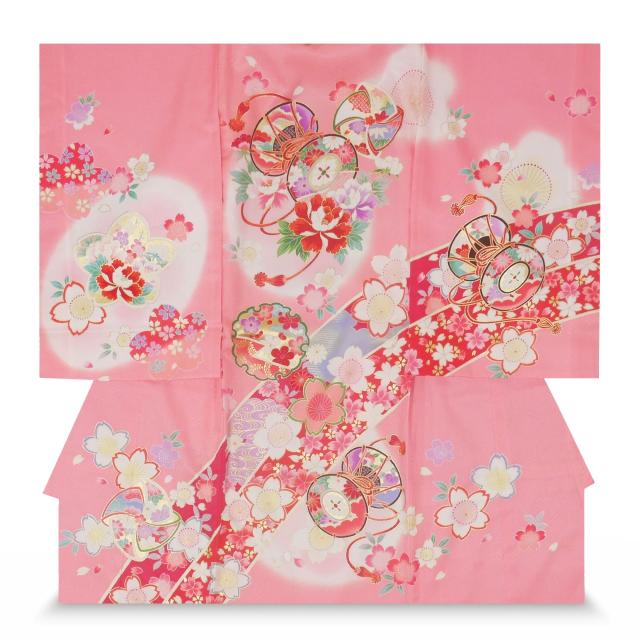 女児 産着 レンタル お宮参り 着物 帽子 よだれかけ セット【女の子 貸衣装 和服 祝い着 初着 産着 往復送料無料】鮮やか ピンク 古典 No58