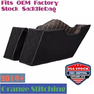 オレンジ糸ステッチ サドルバッグ ライナー OEM ハーレー工場ストック サドルバッグ 14+ に適合 Orange Thread Stitch Saddlebag Liner Fits OEM Harley Factory Stock Saddlebag 14+
