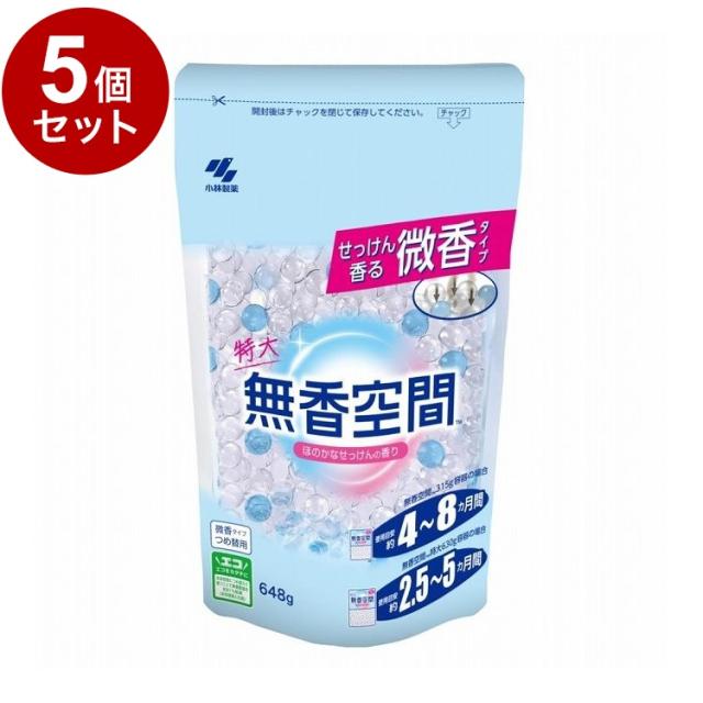 【単品5個セット】 小林製薬 無香空間 特大 つめ替用 ほのかなせっけん 648g【送料無料】