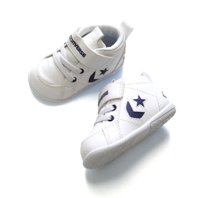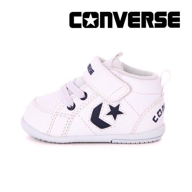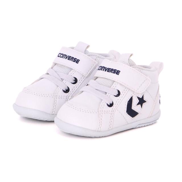 秋冬新作 送料無料 コンバース CONVERSE 子供靴 ベビーシューズ ミニ インチスター ホワイト/ネイビー インファント向け ミッドカット ベルトタイプ プレゼント 出産祝い ファーストシューズ 歩き始め スニーカー 乳幼児