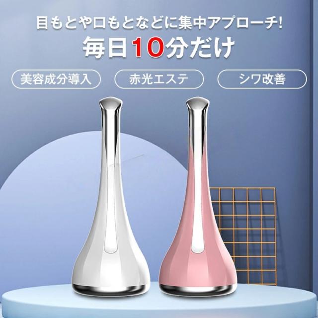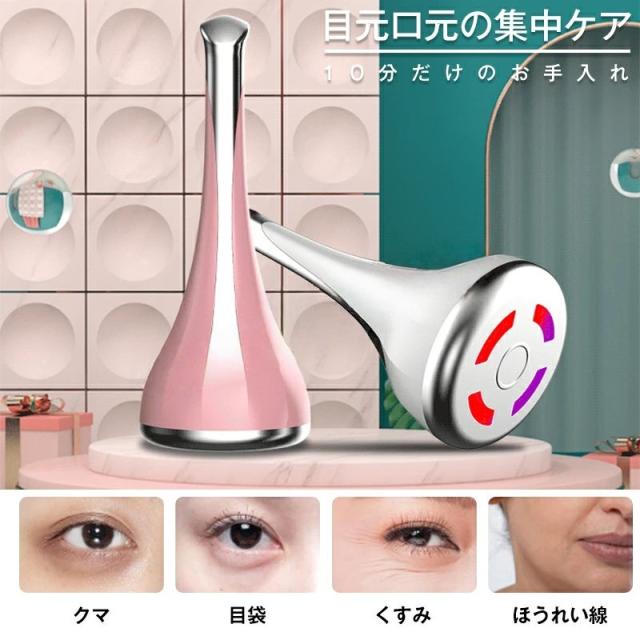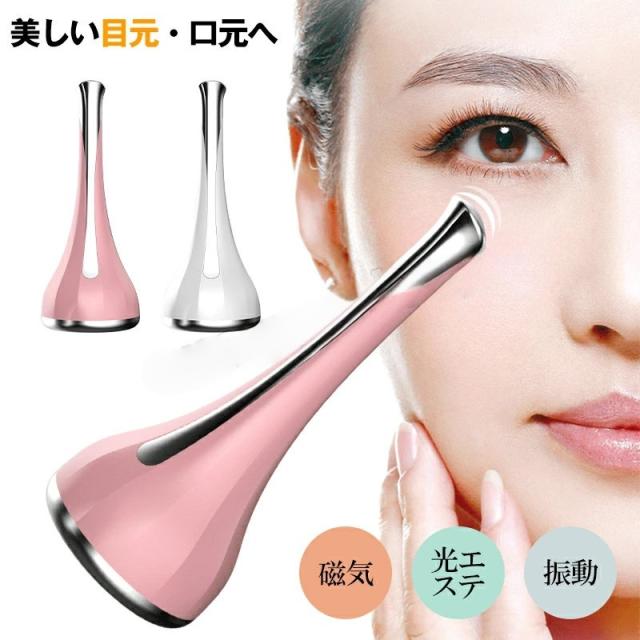 目元美顔器 目元ケア マッサージ 磁気導入 光エステ 振動 美顔器 マイクロカレント 目元 口元ケア 微電流 フェイス 首ケア アイケア フェイスケア 電池タイプ 母の日 プレゼント かわいい ホワイト ピンク