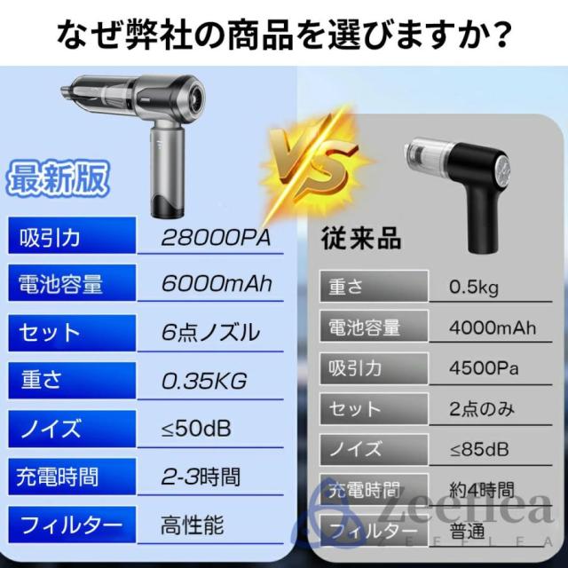ブラシレスモーターを搭載し、パワフル28000PAの吸引力で車内をスッキリ清潔に!驚異のパワフル吸引力搭載の車用掃除機!高効率で持続的な吸引力を発揮!驚異的な吸引力368gの超軽量車載用掃除機!小さなボディながらも威力は絶大。一度の使用であらゆるゴミをスピーディーに取り除きます!車内清掃が簡単になる強力な仕上がりを実現しました!
