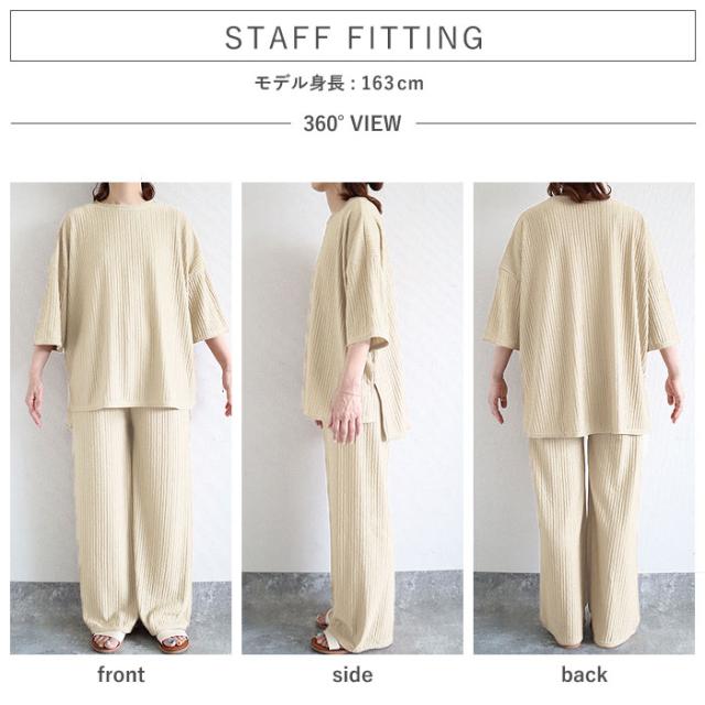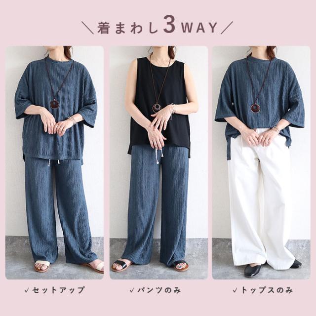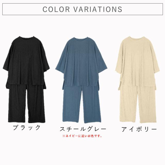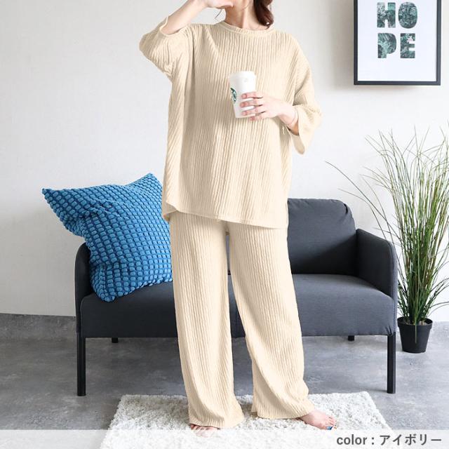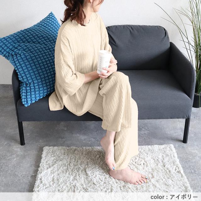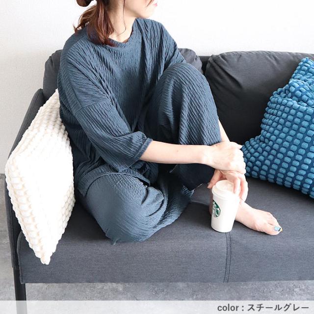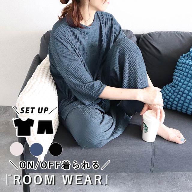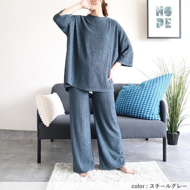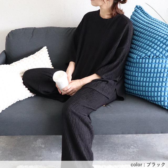 ルームウェア レディース パジャマ セットアップ 上下セット 2点セット プリーツ ランダムプリーツ トップス 半袖 七分袖 ボトムス ルームパンツ ロング ストレート ワイド ウエストゴム ゆったり 楽ちん 春 夏 白 黒 おしゃれ シンプル 40代 30代 50代 60代 大人 カジュアル かわいい きれいめ SALE セール uricca ウリッカ うりっか ポイント利用
