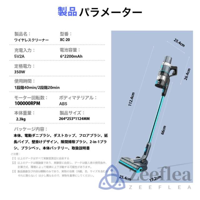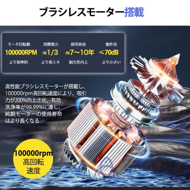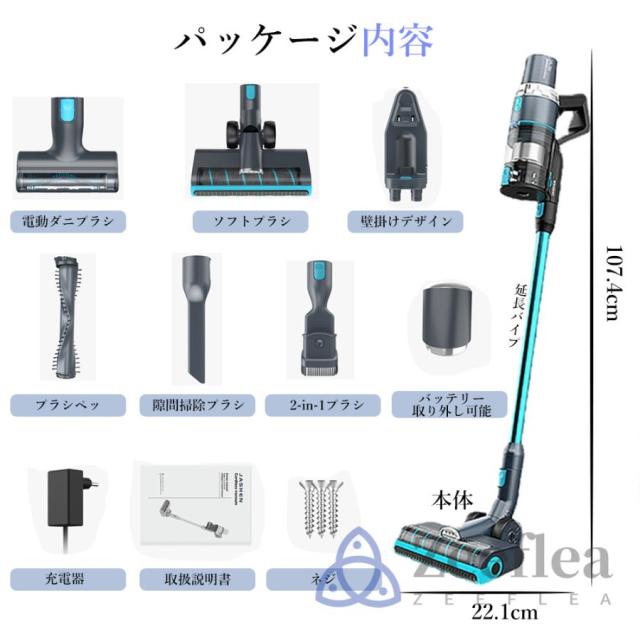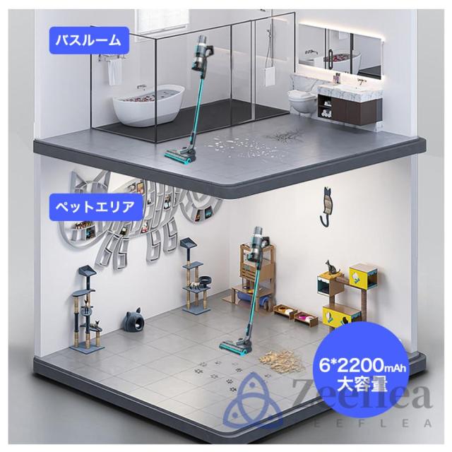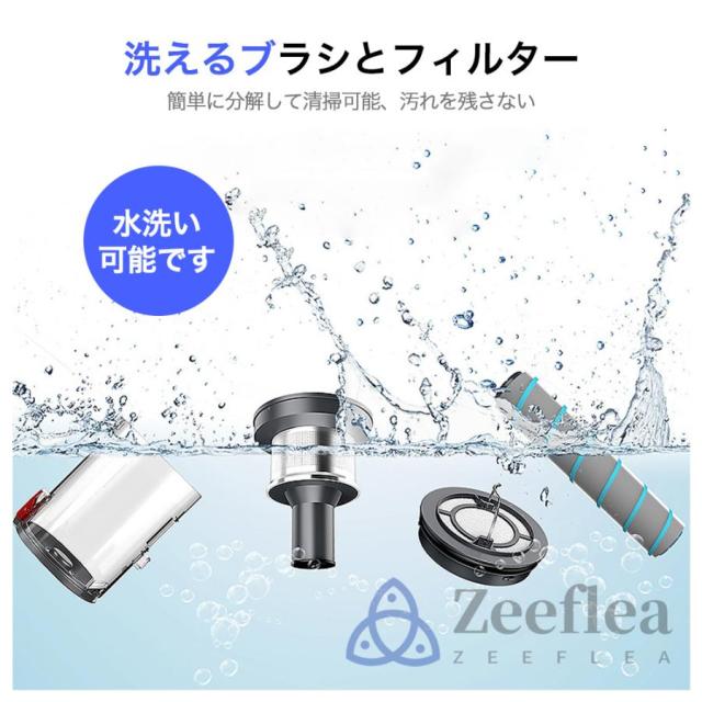 zeefleaコードレス 掃除 機は450Wブラシレスモーター搭載し、吸引力が50000Pa以上に達します。普通の掃除機と比べ、50%よりパワフルに。ハイパワーブラシレスモーターを採用されて、安定したパワー供給により、長い時間変わらない吸引力が続き、しっかり掃除できます。サイクロン式で、0.3ミクロンもの微細な粒子を99.99%捕らえる排気性能の優れた多重濾過システムを通して、きれいな空気を排出します。片手でも使える軽さ、電源コードに縛られなくて、スイッチボタンを押すだけで(連続稼働モード設定)、とても便利です。