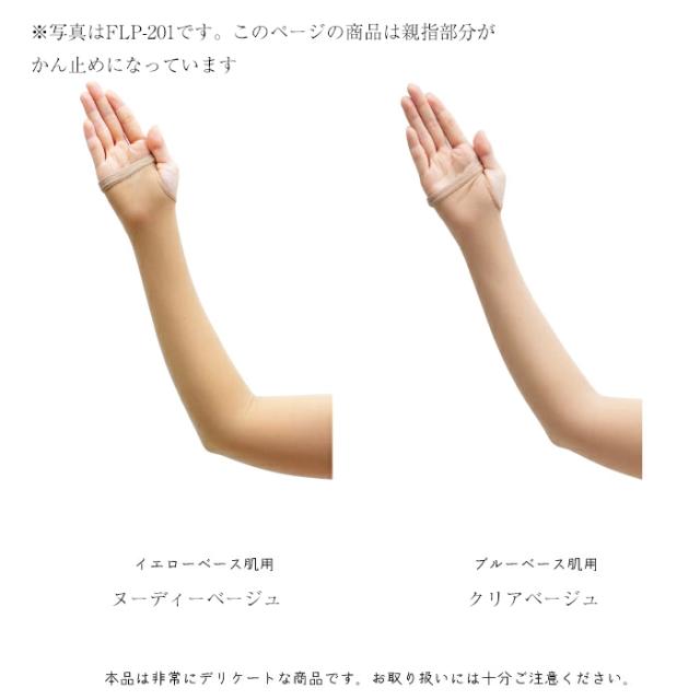 ベージュカラーはお肌をきれいにカバーして、トーンアップする美肌効果の高いアームカバーです。