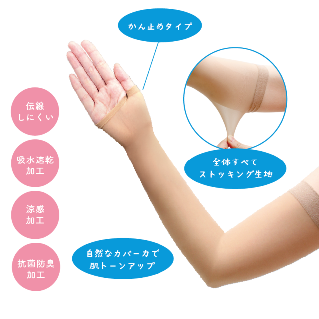ストッキング風アームカバー かん止めタイプ 涼感加工 メール便2点まで 無地 伝線しにくい 自然な肌色カバー 美肌効果 吸水速乾 抗菌防臭 紫外線対策 日焼け止め 夏用 LegStyle レッグスタイル