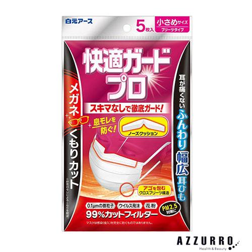 白元アース 快適ガードプロ プリーツタイプ 小さめサイズ 5枚入【ドラッグストア】【追跡可能メール便対応4個まで】【宅急便コンパクト対応】 かぜ 花粉用 日本製 保湿 不織布 小顔 うるおい 乾燥 敏感肌 耳かけ 抗菌 花粉 大人用 使い捨てマスク
