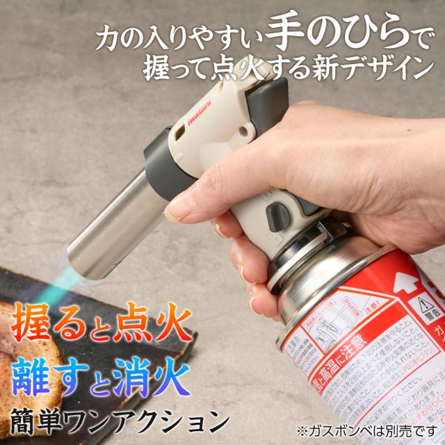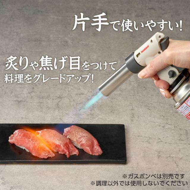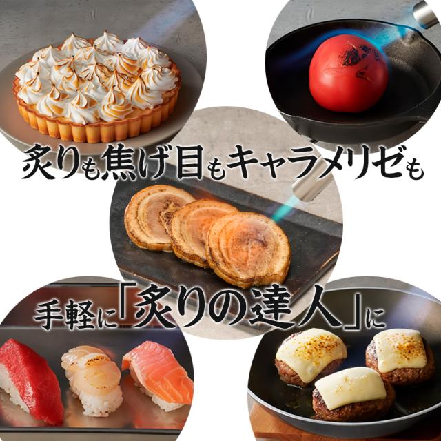 片手で使いやすい調理専用トーチバーナー(ガスボンベは別売)。