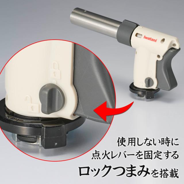 安心設計使用しない時に点火レバーを固定する、ロックつまみを搭載。