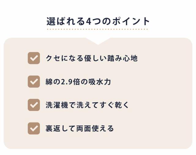 一般的な綿のバスマットと比較すると、その吸水力は2.9倍。独自の織り方で表面積を増やし、肌にフィットして水分を素早く吸水してくれます。