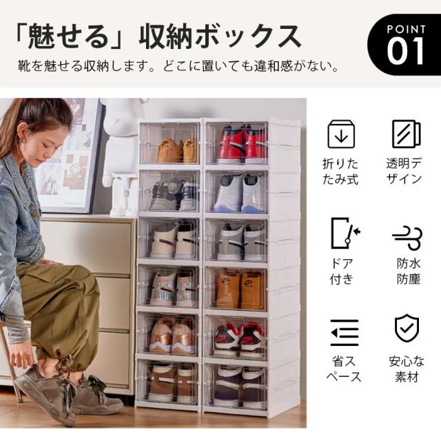 シューズボックス シューズラック 靴箱 靴置き 折り畳み式 組み立て不要 おしゃれ 玄関収納 扉付き 玄関収納 靴収納 透明 収納