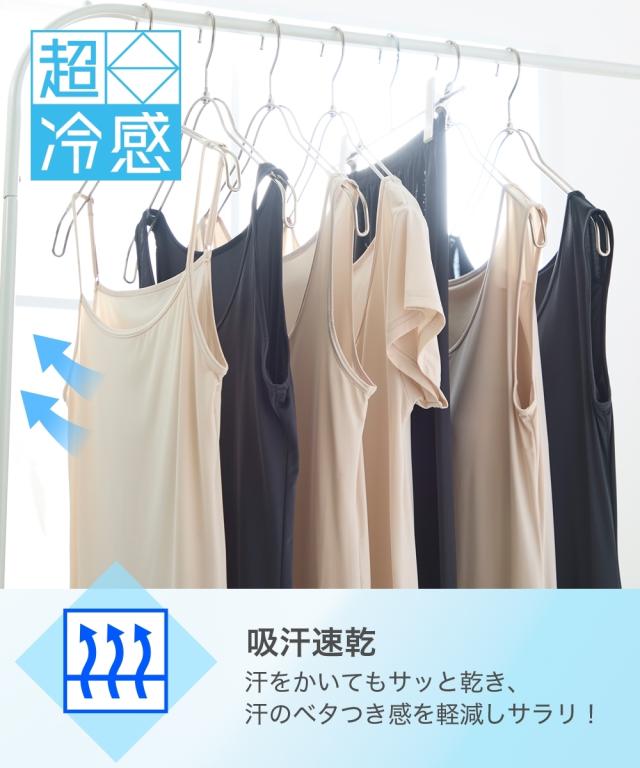 夏も心地よく 触れた瞬間ひんやり。ニッセンで一番冷たい下着【超冷感】・べたつきやムレが気になる ・暑さで止まらない汗 ・汗冷えする ・気がつけば日焼けしている そんな夏の不快感は、【超冷感】で解決。定番の【超冷感】は、つるんとなめらかな気持ちのいい生地が特徴です。きっと毎日着たくなるここちよさ。【機能】・接触冷感 触れた瞬間ひんやりと気持ちのいい超冷感素材。・吸汗速乾 汗をかいてもサッと乾き、汗のべたつき感を軽減してさらっと快適。・高耐久性 特別に紡績した靭性の高い糸を使用しているので型崩れせずきれいなまま。・UVカット 着るだけ簡単紫外線対策に。・ストレッチ 伸縮性があり、動きをさまたげることなく、スムーズに着れる・動ける。【デザイン】ブラなし1枚で着用できるブラトップでさらに涼しく シンプルで使いやすいベーシックな形 標準的な着丈 【カラー】定番のブラック/肌なじみの良いベージュ 累計95万枚を突破した超冷感シリーズ。〇超冷感AIR メッシュ素材。〇超冷感Cotton 肌に優しい夏の綿100%。※時期により商品が完売の場合がございます。 ※商品の色移りを防止するために個包装を行っている場合がございます。