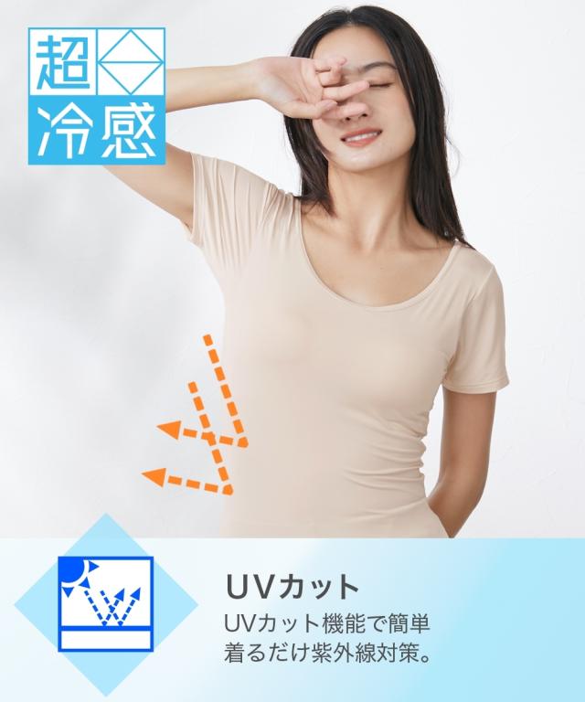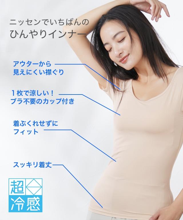 ブラトップ カップ付き レディース 超冷感 半袖 インナー 接触冷感 吸汗速乾 UVカット 夏 肌着 女性 | S/M/L | ニッセン nissen