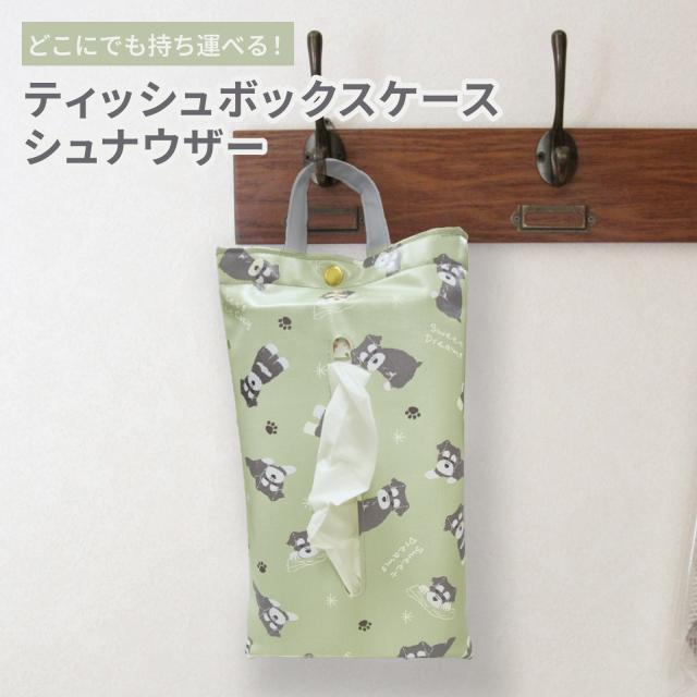 ★ 送料無料 ★ 1000円ポッキリ ★ シュナウザー ティッシュボックス ケース ティッシュボックス ホルダー ティッシュボックス カバー 犬 犬柄 ライトグリーン 持ち運び 吊り下げ ハンドル付き 車内 壁掛け