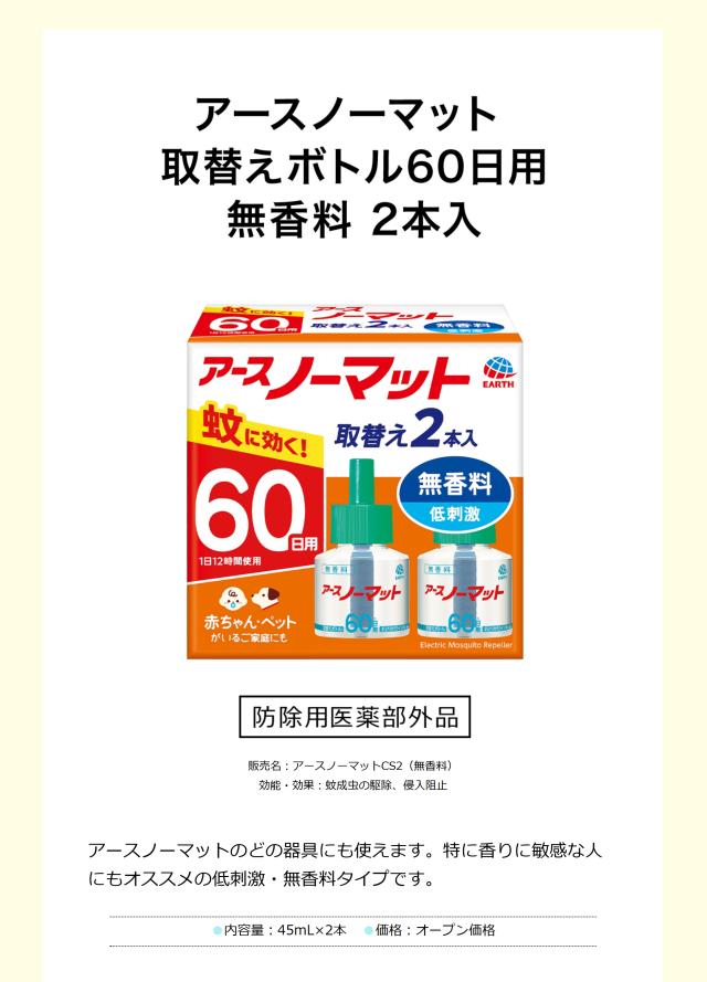 ・アースノーマット 取替えボトル60日用 無香料 2本入×1点