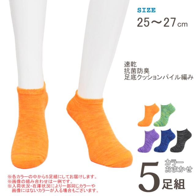 靴下 メンズ くるぶし 速乾DRY スニーカー丈 DON-5P61 おまかせ 5足組 送料無料 メンズソックス 紳士靴下 くるぶしソックス ドライ 吸湿速乾 消臭靴下 足の臭い 対策 ムレない靴下 蒸れにくい 抗菌防臭 スニーカーソックス パイル編み(06802)