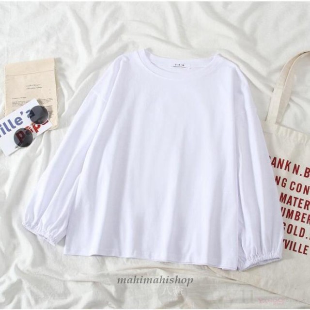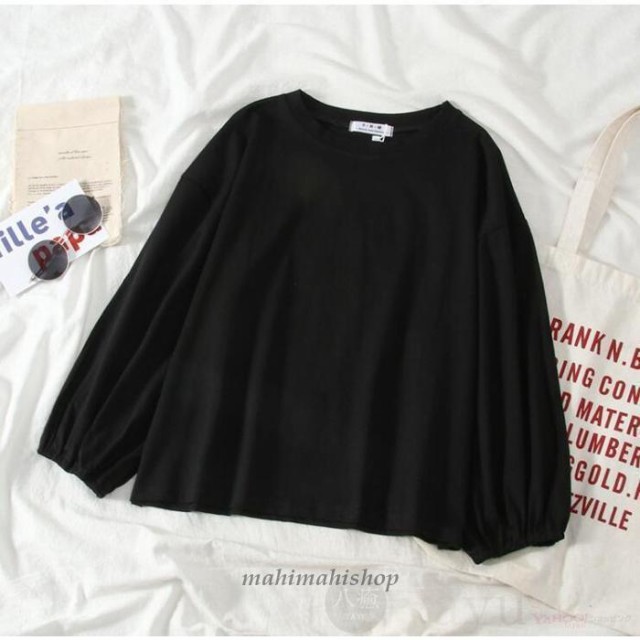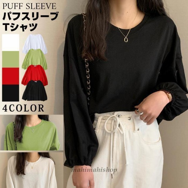 Tシャツ カットソー レディース 長袖 無地 トップス ゆったり 体型カバー 可愛い バルーンスリーブ 春秋 ファッション おしゃれ