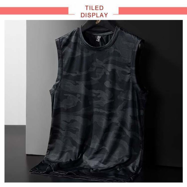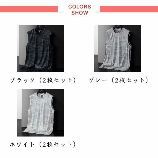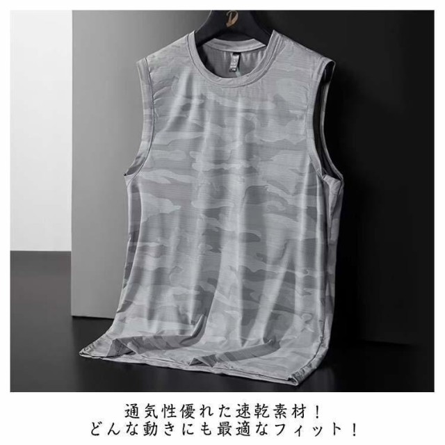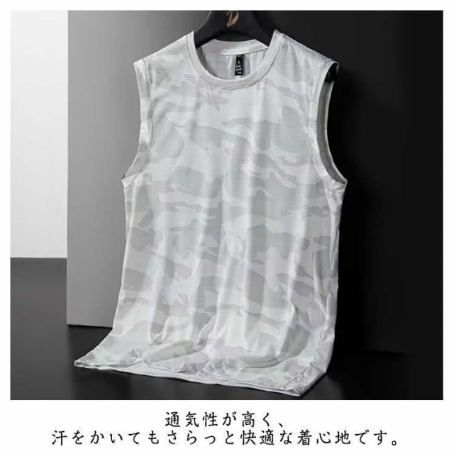 薄手 メンズ 夏 2枚セット接触冷感 Tシャツ 吸汗速乾 タンクトップ 迷彩柄 メッシュ ドライ 無地 涼しい 袖なしTシャツ 2枚セット接触冷感