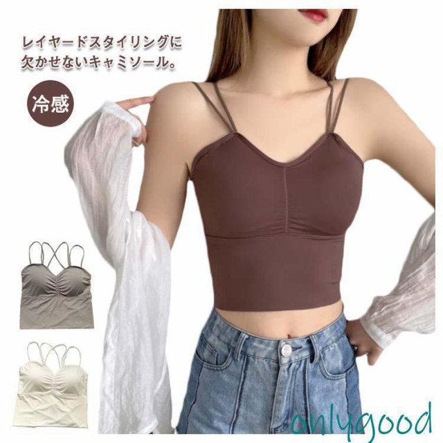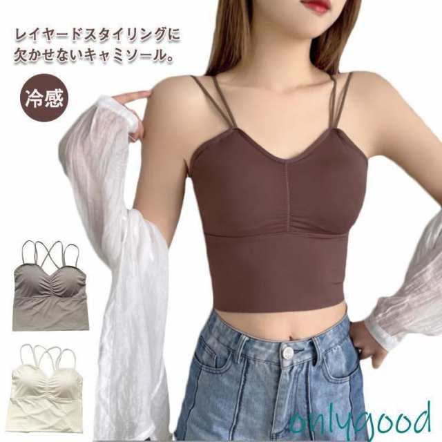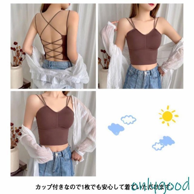 春夏 接触冷感 背中見せ ブラ キャミソール カップ付き 下着 ブラジャー レディース インナー 見せブラ ノンワイヤー ヨガブラ ブラトップ バック