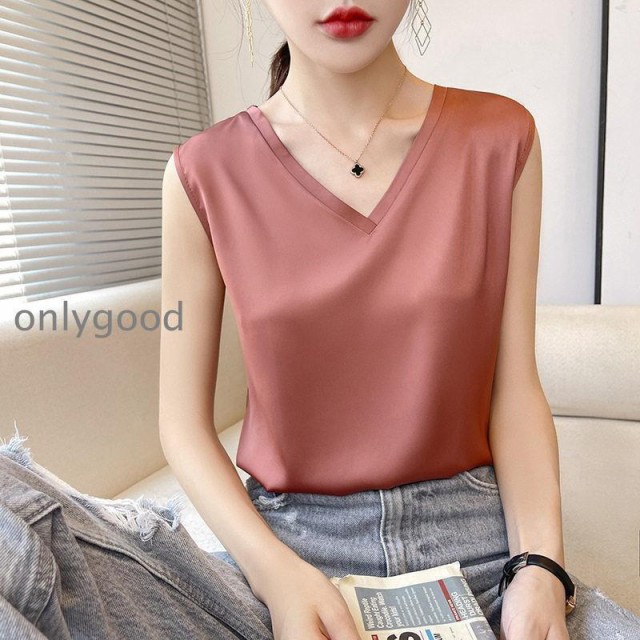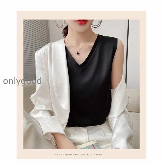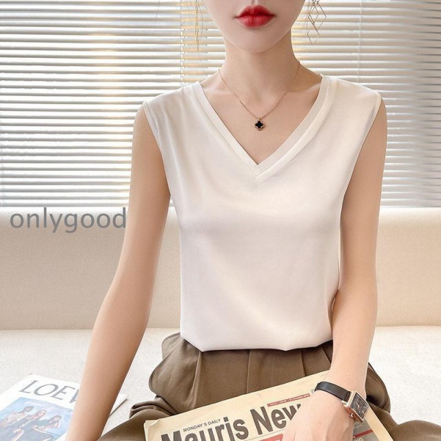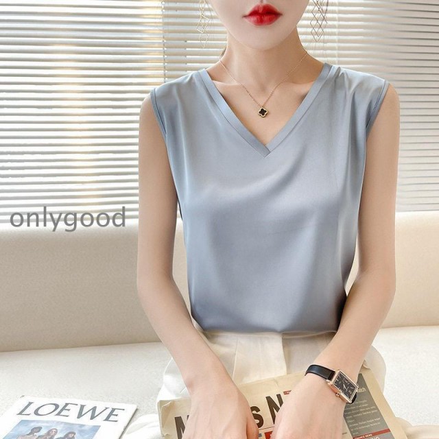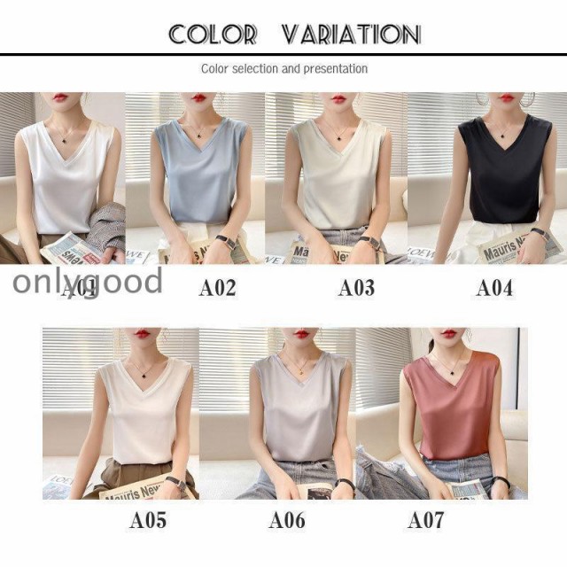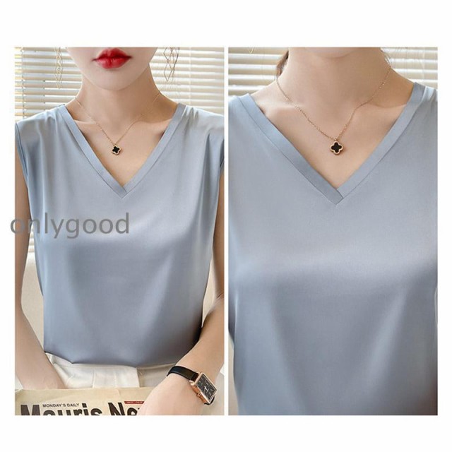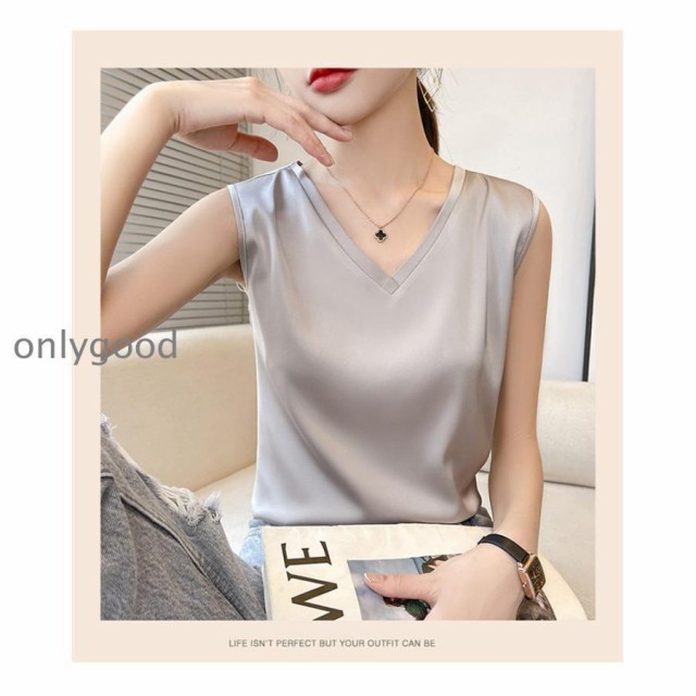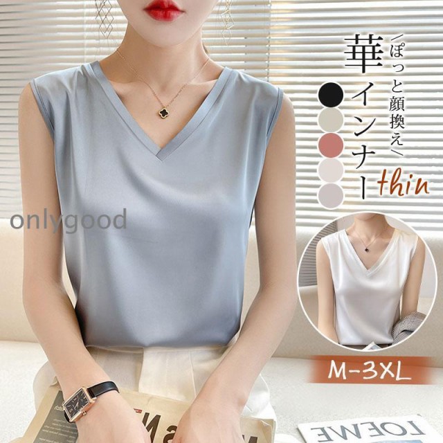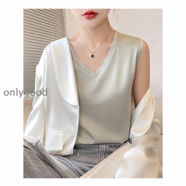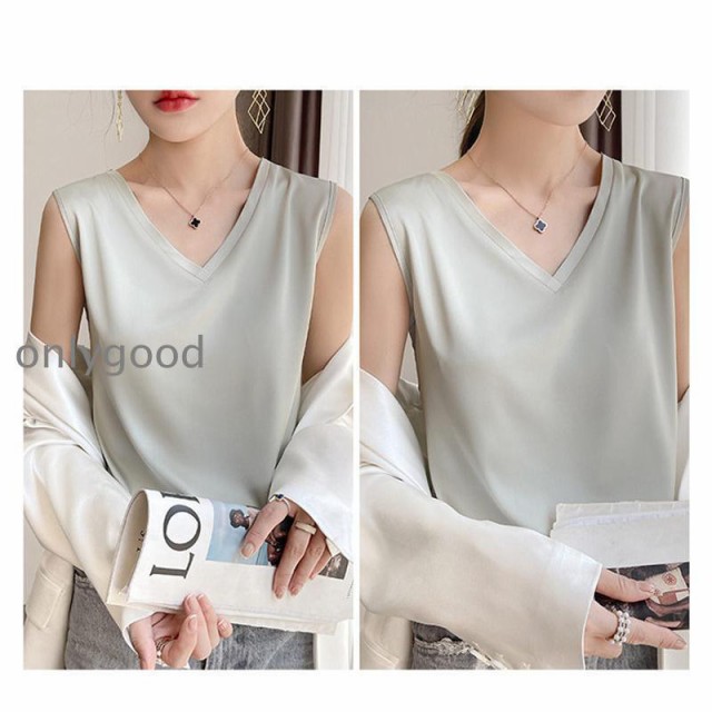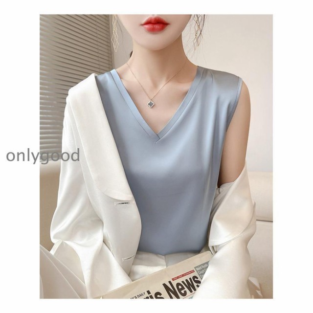 シルク風タンクトップ レディース 夏 春 Vネック トップス レイヤード インナー カットソー 吸汗 速乾 抗菌防臭 肌着 下着 透け防止 部屋着