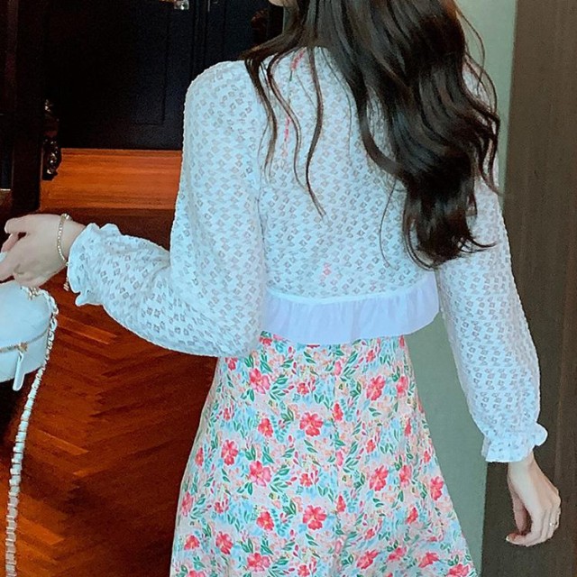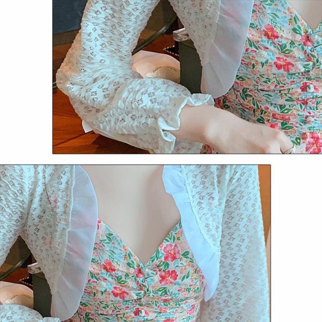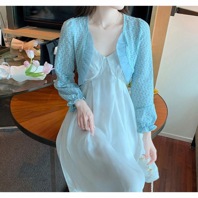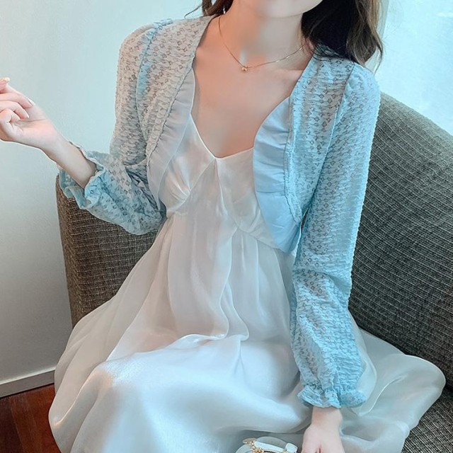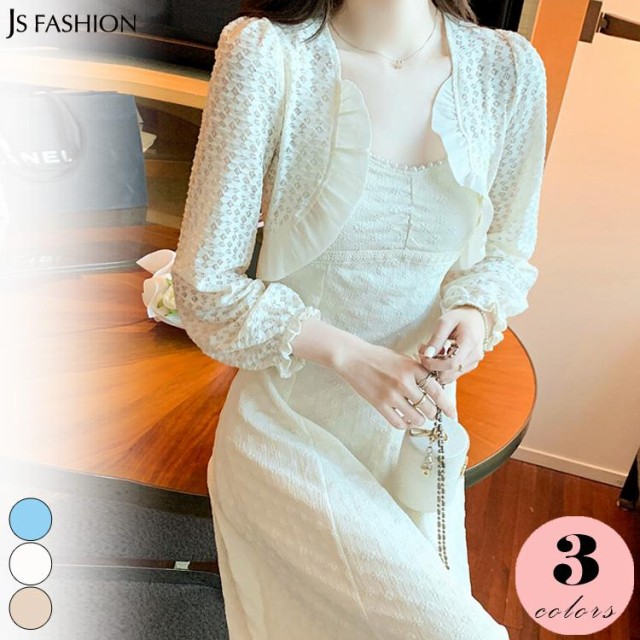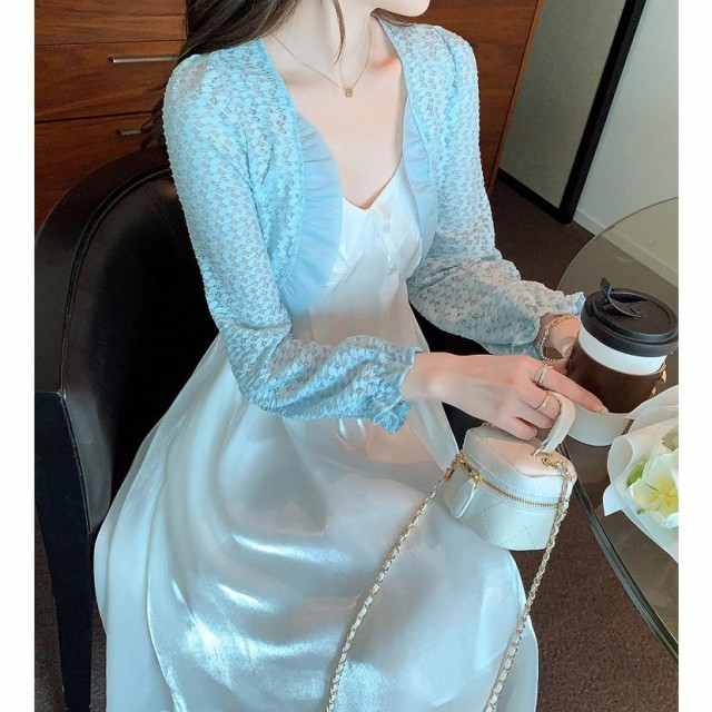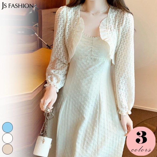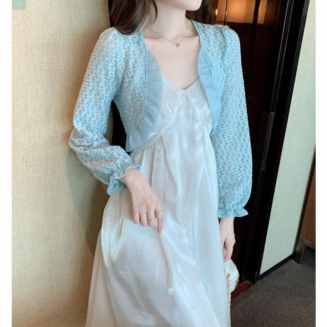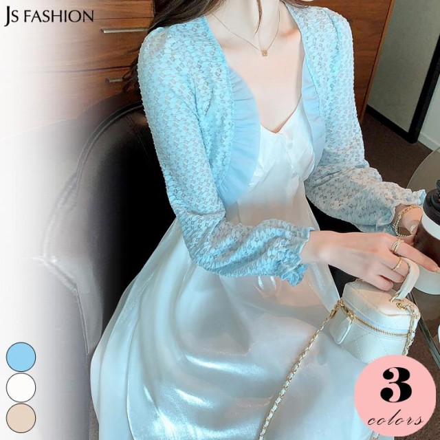 ボレロ レース 全3色 長袖 フリル オーガンジー ボレロ ミニ丈 シアーカーディガン シースルー 羽織り 冷房対策 春 夏 オケージョン