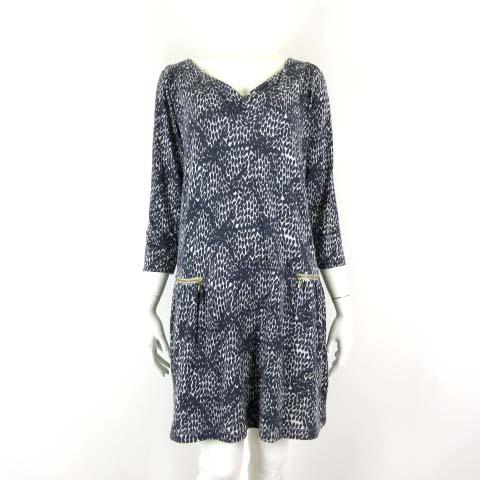 【中古】ギャップ GAP ワンピース カットソー 総柄 ストレッチ Vネック 長袖 M オフ白 グレー レディース