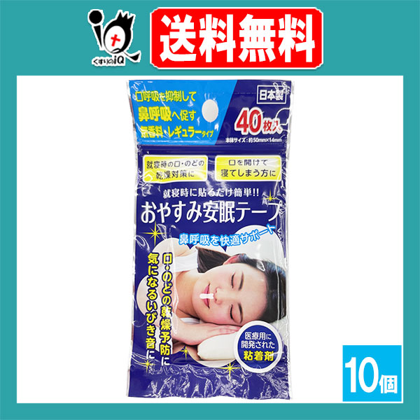おやすみ安眠テープ 40枚入×10個セット【奥田薬品】レギュラータイプ 就寝時に貼るだけ簡単!!鼻呼吸を快適サポート 鼻呼吸テープ いびき防止テープ 鼻孔テープ 鼻呼吸サポート 口閉じテープ