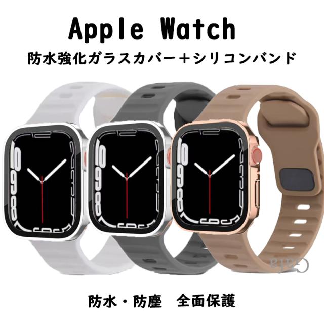 Apple watchバンドカバー アップルウォッチバンドカバーセット シリコン 防水強化ガラスカバー Apple Watch 40mm 41mm 42mm 44mm 45mm 46mm 49mm
