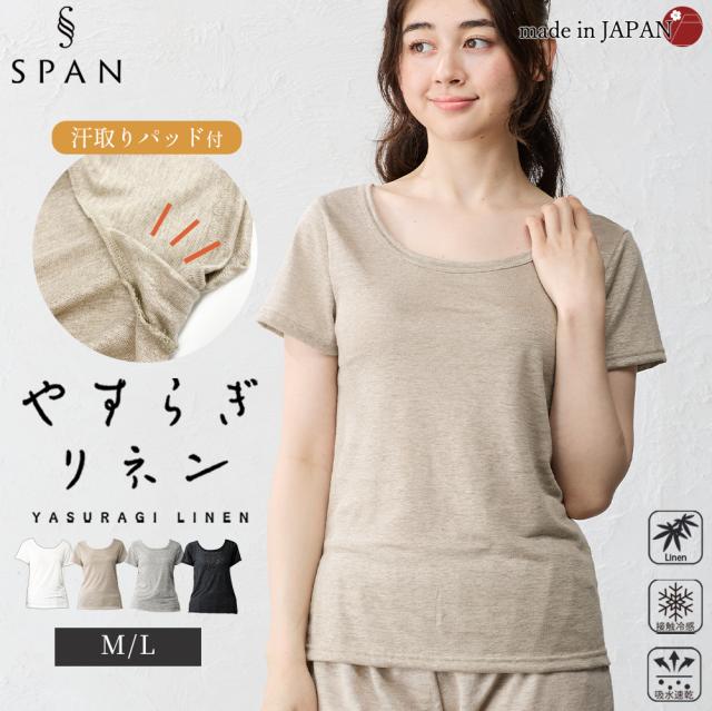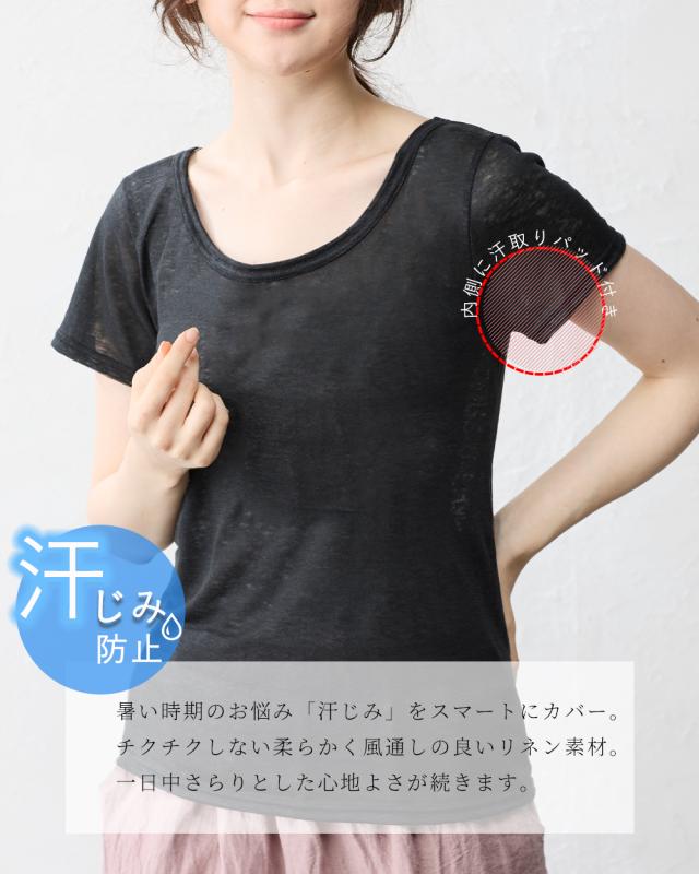 日本製 リネン 汗取りTシャツ